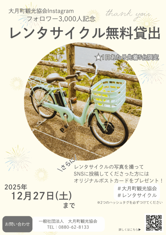 そこで明日から12月27日(土)まで、フォロワーさん限定でレンタサイクルの無料貸出を行います。
