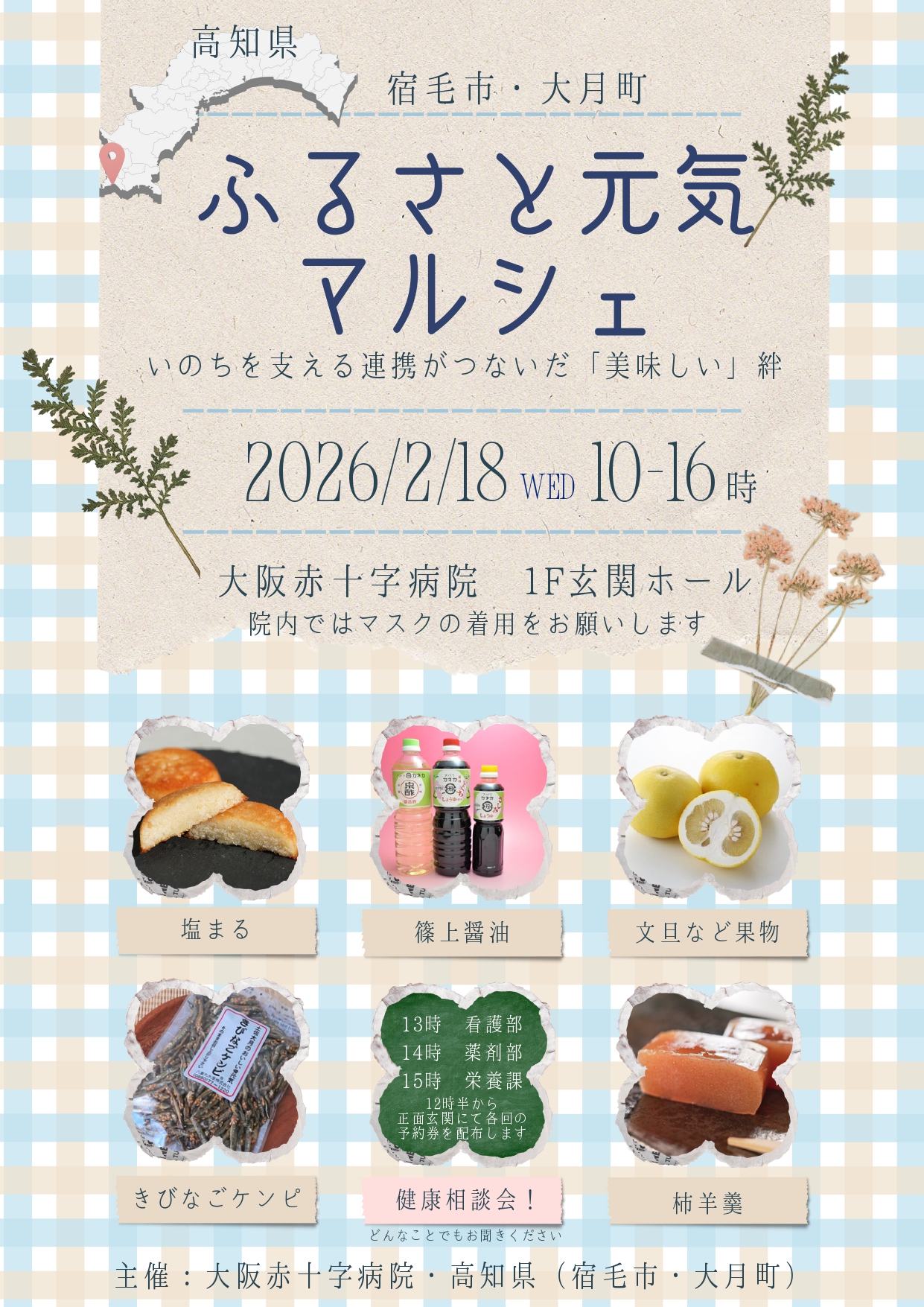 宿毛市、大月町と大阪赤十字病院の連携により『ふるさと元気マルシェ』が大阪赤十字病院にて開催されます!