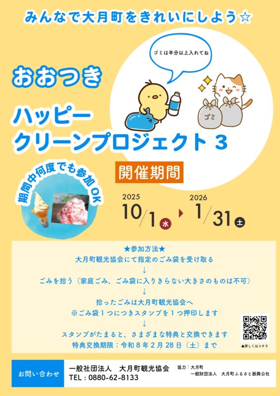 昨年度もたくさんの方にご協力いただきました『おおつきハッピークリーンプロジェクト』を再度開催いたします。 大月町在住の方、大月町に遊びにきてくれた方、どなたでも参加OK✨ みんなで…