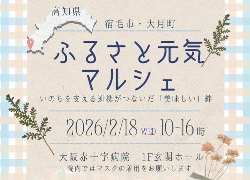宿毛市、大月町と大阪赤十字病院の連携により『ふるさと元気マルシェ』が大阪赤十字病院にて開催されます! 宿毛市、大月町の特産品販売や今が旬の柑橘や野菜のほか、普段大阪では手に入らない…